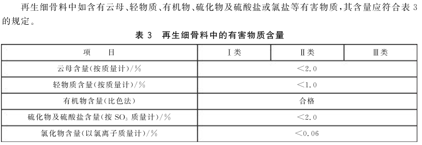其中規(guī)定混凝土和砂漿中再生骨料按照性能分為I類 II類 III類。再生骨料按照細(xì)度模數(shù)分為粗、中、細(xì)三種規(guī)格,細(xì)度模數(shù)Mx分為為粗:Mx=3.7-3.1mm,中Mx=3.0-2.3mm,細(xì)Mx=2.2-1.6mm。