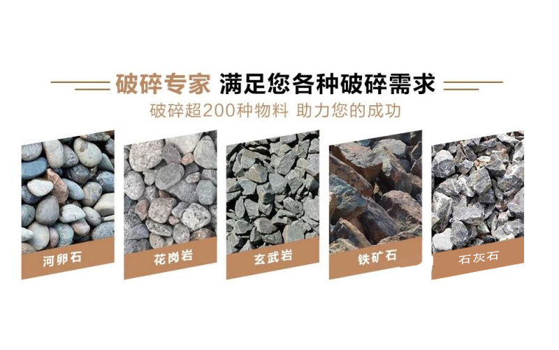 常見的物料有石灰石、花崗巖、石英石、玄武巖、鵝卵石、煤矸石和金屬礦石等,不同的母巖其硬度不同,組成化學(xué)成分也不同,當(dāng)然利用價(jià)值和處理難度也不一樣。