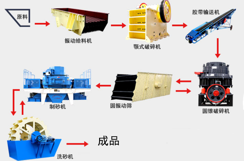 青石本身耐磨度高,抗壓強(qiáng)度大,用于破碎青石的的設(shè)備主要有鄂式破碎機(jī)、圓錐破碎機(jī)和制砂機(jī),另外還有用到給料機(jī)、輸送機(jī)和振動(dòng)篩等設(shè)備。
