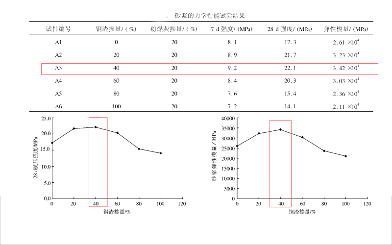 2、鋼渣可以提高砂漿的強度,隨著鋼渣含量的不斷增加,砂漿中的骨料含量越來越高,砂漿的粘合性也隨之變低,進而影響其抗壓強度。砂漿的強度同樣是隨著鋼渣含量不斷增加而呈現(xiàn)先增加后減少的趨勢,據(jù)數(shù)據(jù)顯示,當(dāng)鋼渣含量為砂漿總量的百分之四十時,砂漿的抗壓強度更高。