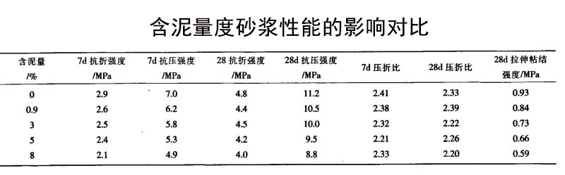 含泥量對抗裂砂漿的影響