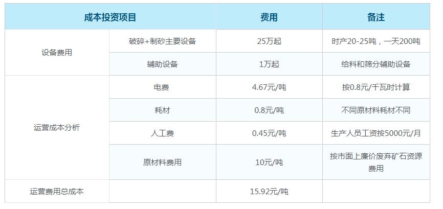 綜合數(shù)據(jù),2016年全國(guó)機(jī)制砂綜合價(jià)格為40元/噸,到2017年2月底,機(jī)制砂價(jià)已達(dá)65元左右,2017下半年機(jī)制砂報(bào)價(jià)已經(jīng)達(dá)到90元/噸,2020年全國(guó)綜合機(jī)制砂已經(jīng)達(dá)約120/噸,在四年間上漲近300%,接近2016年平均價(jià)格的3倍!200t/h鵝卵石制砂生產(chǎn)線為例,為更直觀表達(dá)以表格方式呈現(xiàn)。